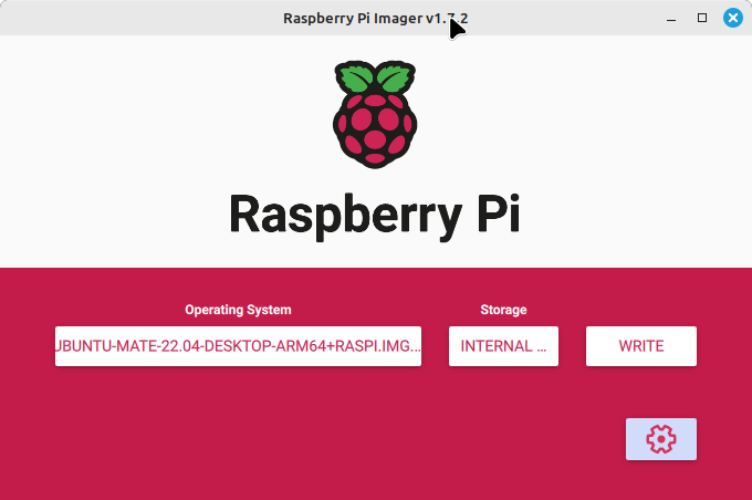 Ref: Ubuntu MATE From the Ubuntu MATE website download the Raspberry Pi 64-bit image, compatible with Raspberry Pi models: B3, B3+, B4 and 400. The downloaded image at the time of writing is ubuntu-mate-22.04-desktop-arm64+raspi.img.xz. 3. Raspberry Pi3.1. Using the Raspberry Pi imagerFrom the Raspberry Pi Software Centre download and install the latest version of The Raspberry Pi imager. ~$ ls ~/Downloads imager_1.7.5_amd64.deb Install and then run the Raspberry Pi imager. In this example it is carried out on a GNU/Linux OS. ~$ sudo apt install rpi-imager ~$ rpi-imager