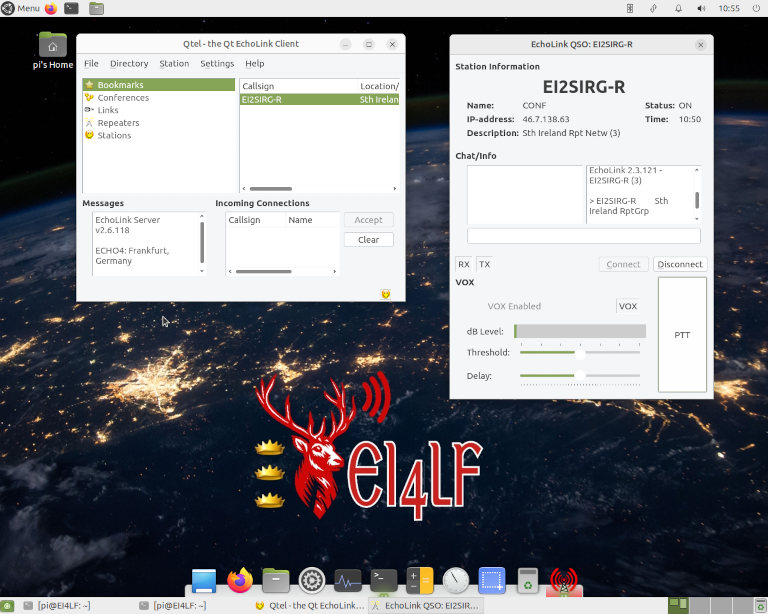 View of the working Desktop with the HamRadio category from the Menu 11. Example application - QTelQTel is an EchoLink client built using the QT graphical framework. Here shown QTel connected to the Southern Ireland Repeater Network.