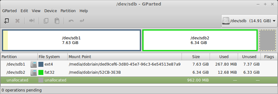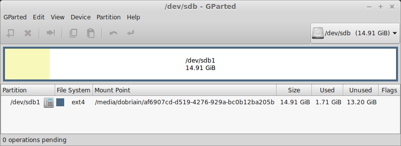 $ cat /etc/fstab # /etc/fstab: static file system information. # # Use 'blkid' to print the universally unique identifier for a # device; this may be used with UUID= as a more robust way to name devices # that works even if disks are added and removed. See fstab(5). # # <file system> <mount point> <type> <options> <dump> <pass> /dev/mapper/mint--vg-root / ext4 errors=remount-ro 0 1 # /boot was on /dev/sda1 during installation UUID=3b0a7ce9-55c7-43b1-8c54-96510bbda441 /boot ext2 defaults 0 2 /dev/mapper/mint--vg-swap_1 none swap sw 0 0